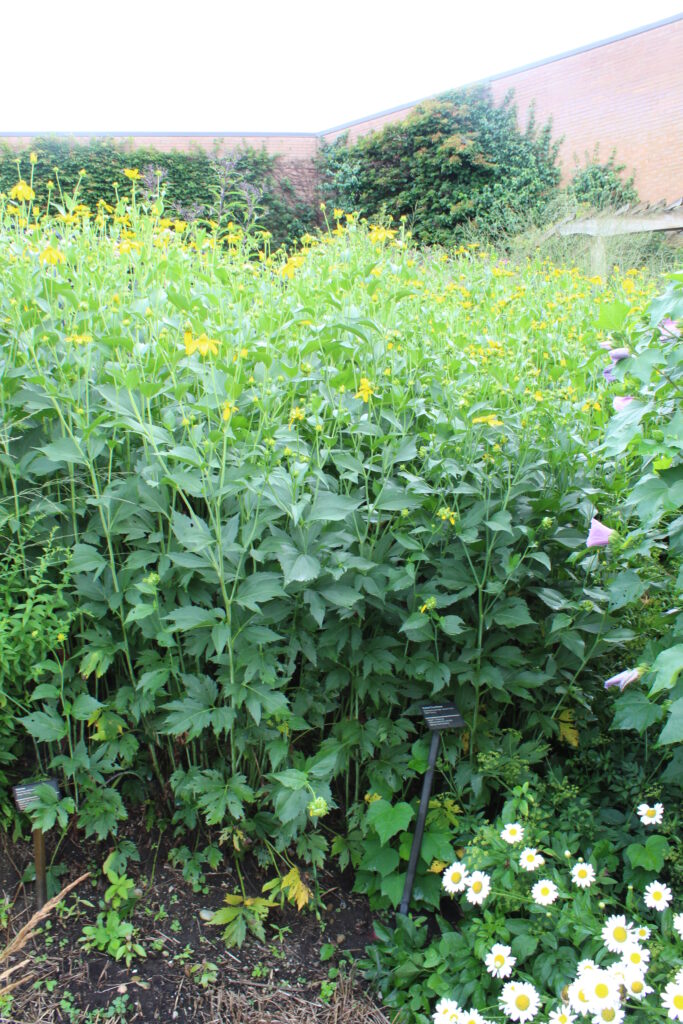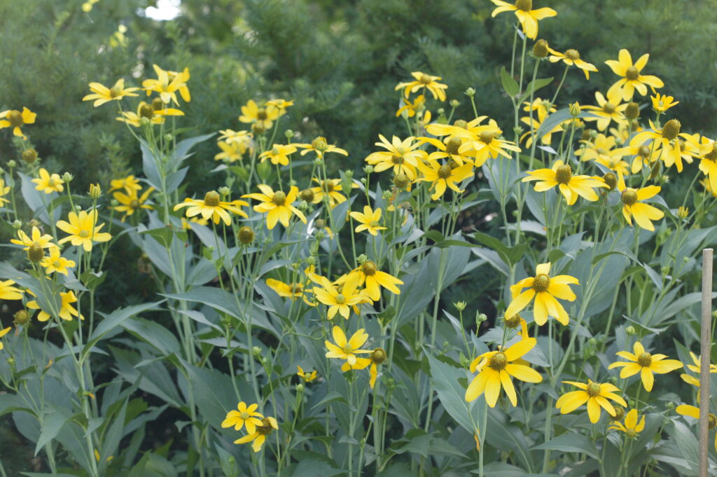 A short, dense, fall blooming perennial with bright yellow flowers that cover the entire plant in the fall. Attracts birds and pollinators.