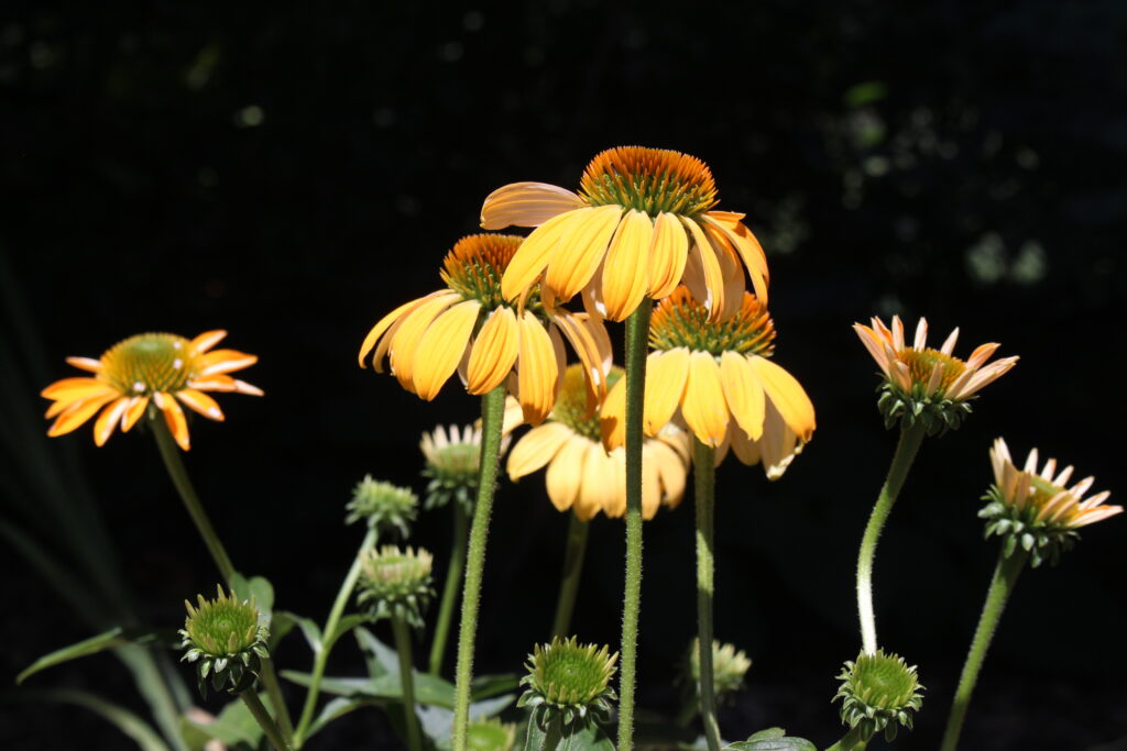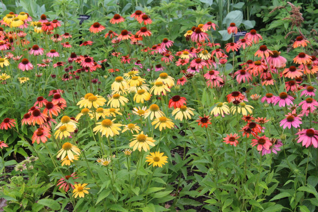Cheyenne Spirit Coneflower is a native perennial plant. It has fragrant flowers can range from red, orange, yellow, pink, and white, all with orange, cone-shaped centers. The flowers bloom from summer to fall. It attracts pollinators and birds.