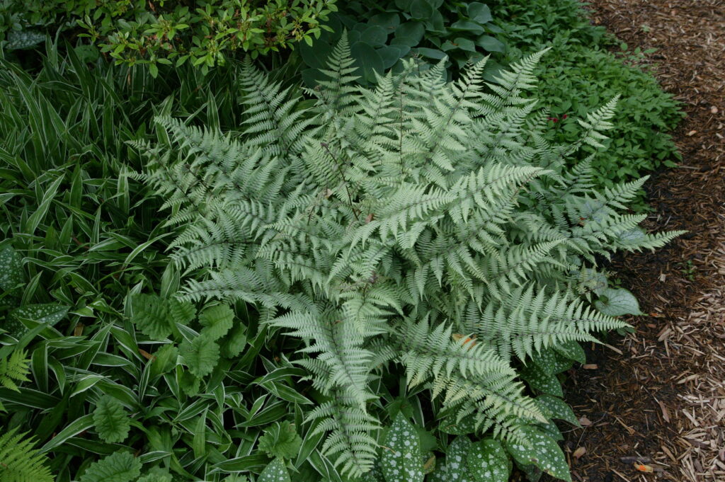 Ghost Japanese Painted Fern is a cultivar of Japanese Painted Fern noted for its silver fronds.