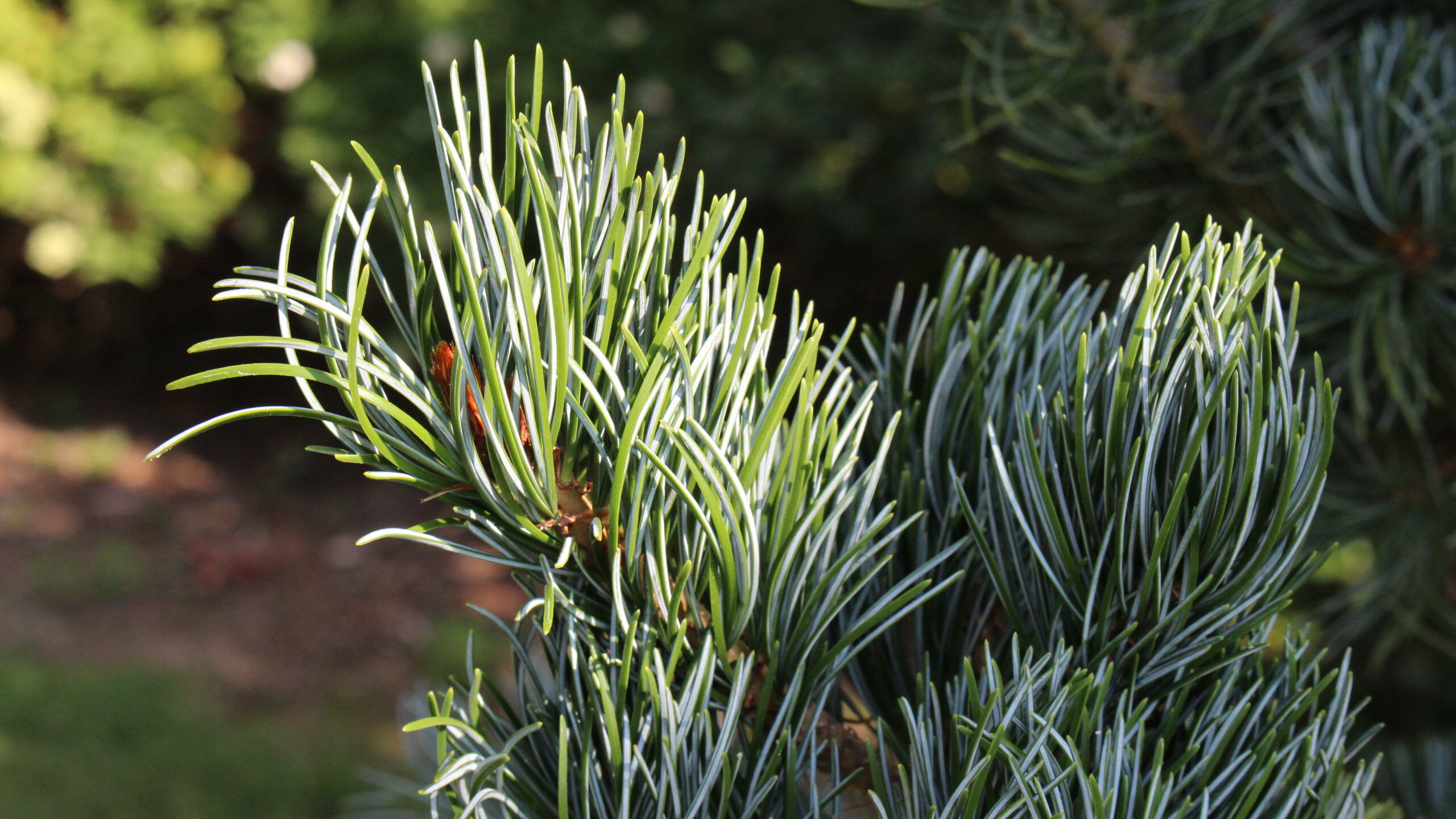 Japanese White Pine evergreen trees have needles that are blue-green soft needles are found in twisted bundles of 5. Cones are reddish-brown.