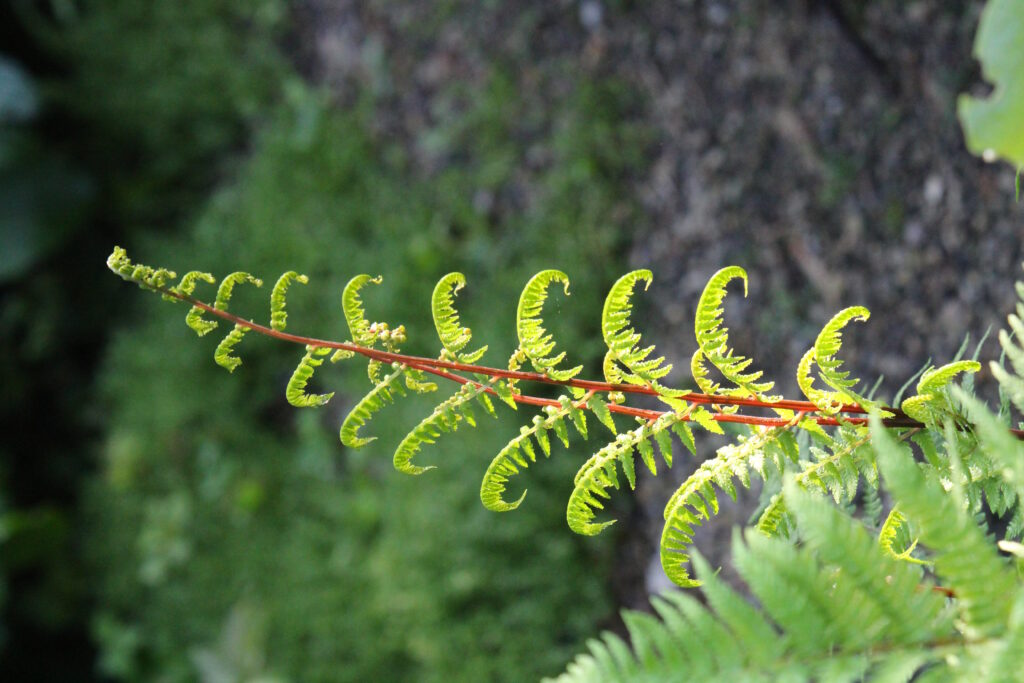 Lady in Red Lady Fern is a short cultivar of Red Lady Fern with upright bright green fronds with red striping.