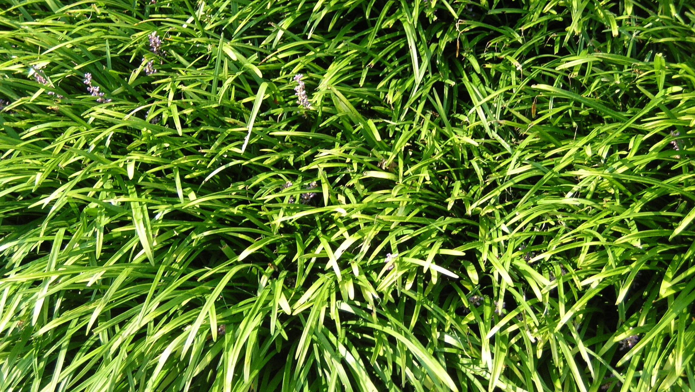 Lilyturf is a very tough, grass-like, quick spreading perennial. Purple flowers bloom in the fall (mostly are covered up by the foliage) followed by black berries that persist through the winter.
