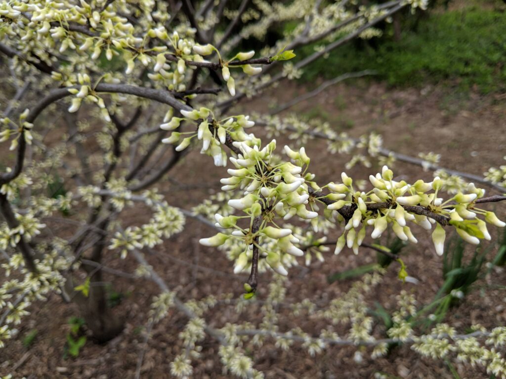 Native. Understory ornamental tree with heart shaped leaves. Blooms in early spring with white, pea-like flowers. Fall color is yellow.