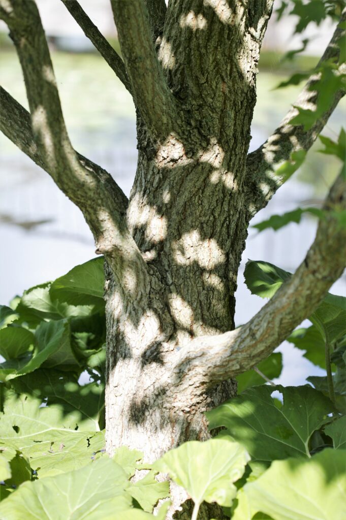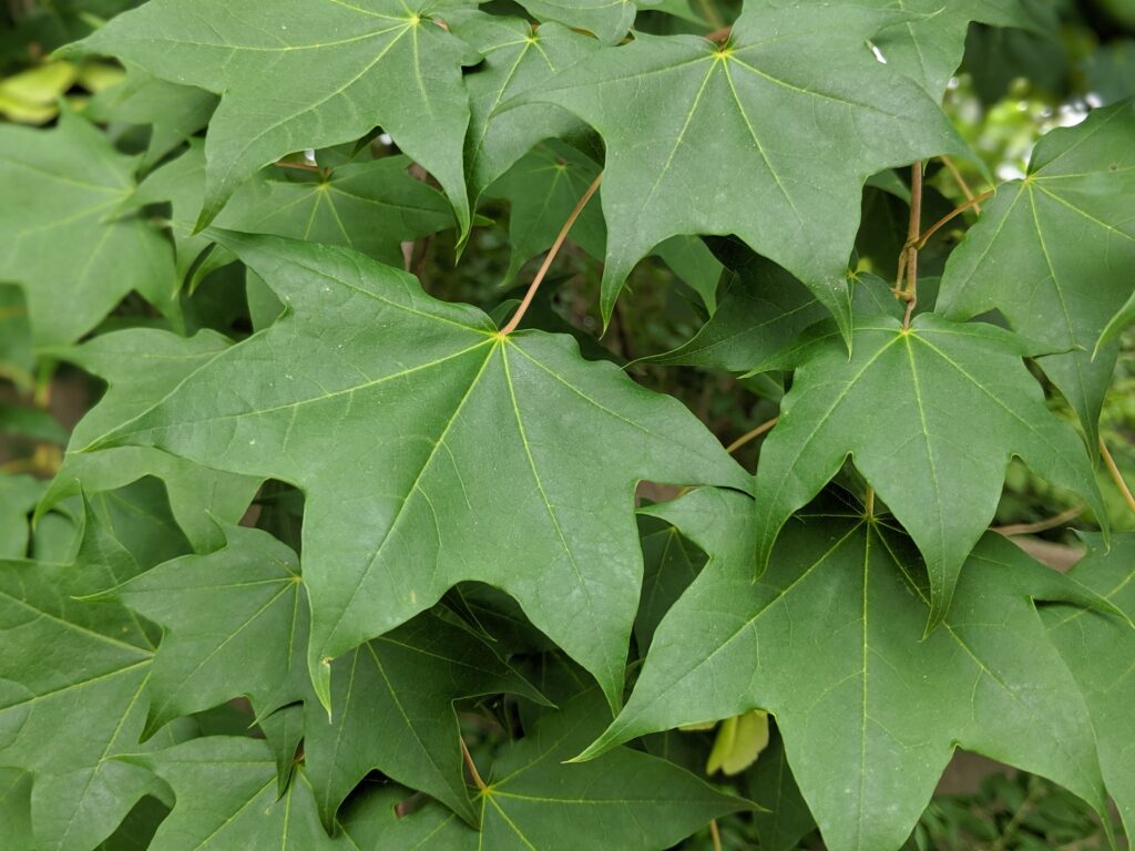 Shantung Maple is a small and rounded understory maple ornamental tree. It has green leaves with five triangular lobes that emerge a reddish-purple in the spring and turn darker green in the summer. It has yellow and orange fall color.