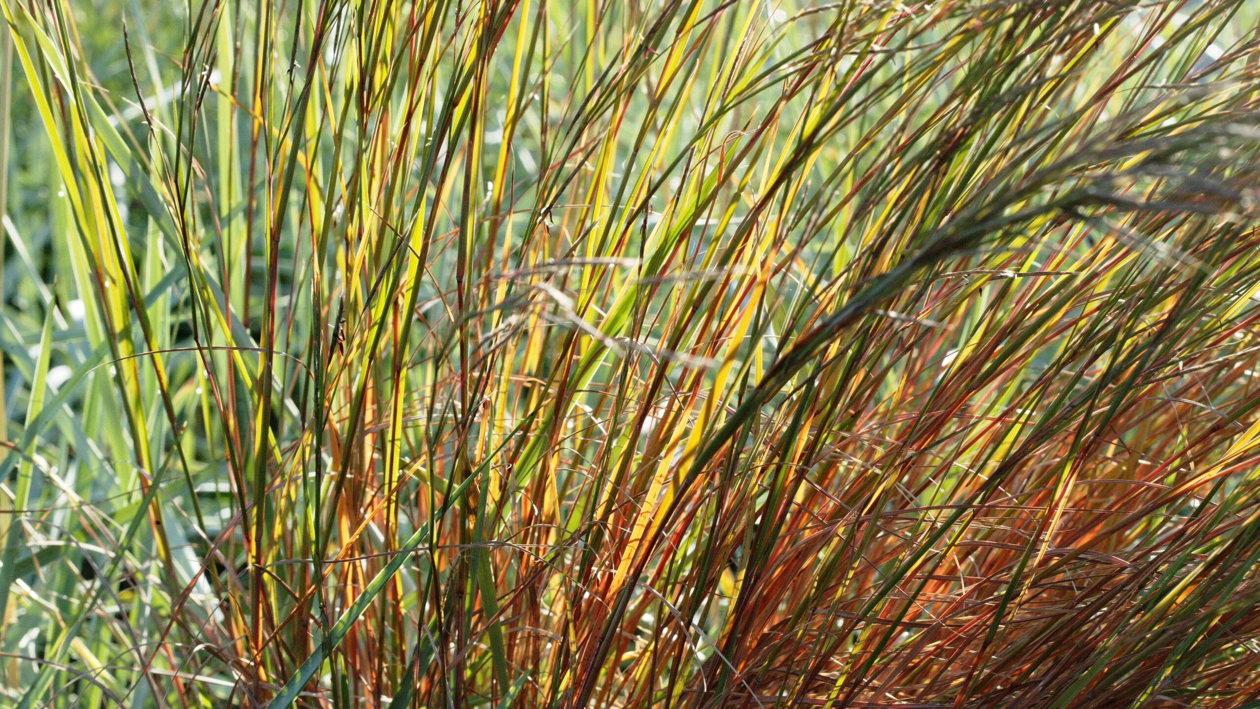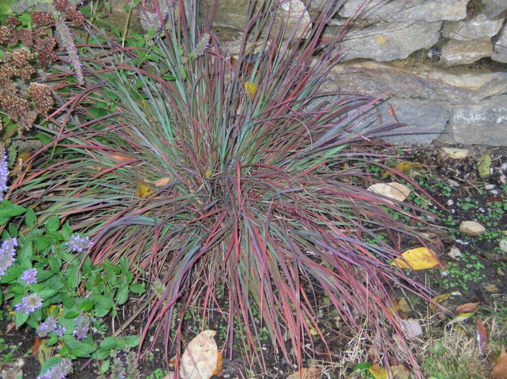 The Blues Little Bluestem is a native ornamental grass. The foliage grows upright in clumps of tinted-blue leaves. The foliage changes to burgundy-red in the fall. Purplish-bronze flowers appear on the branched stems the rise above the foliage in August.