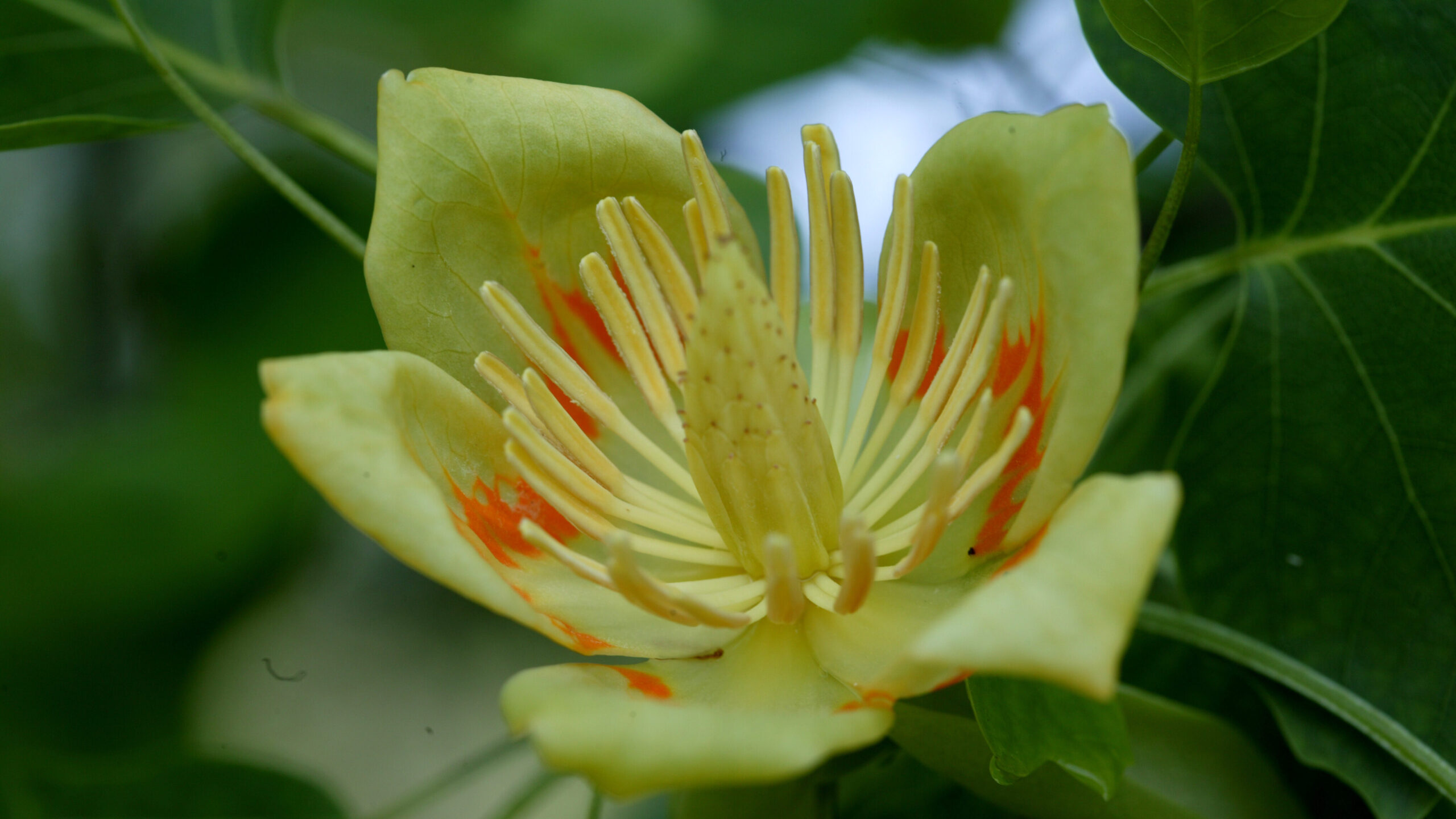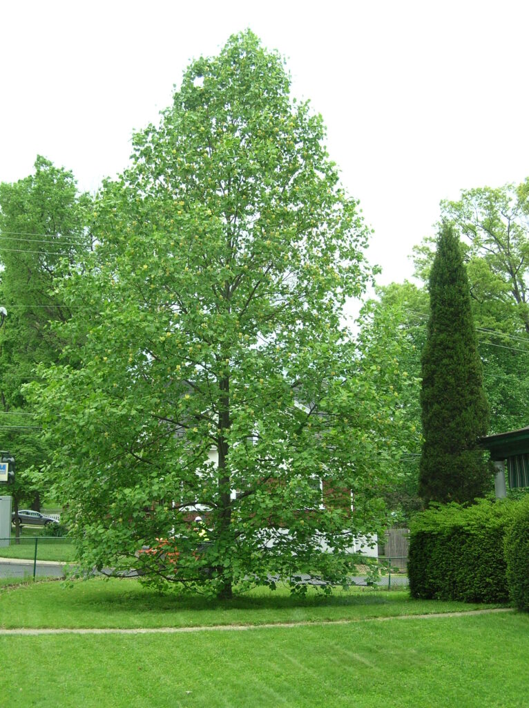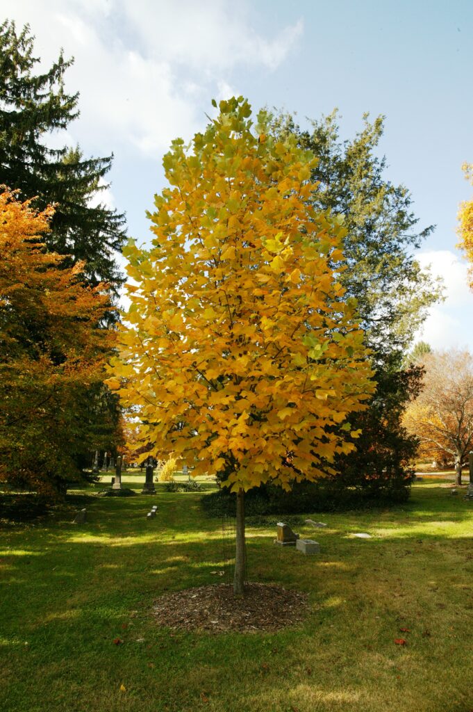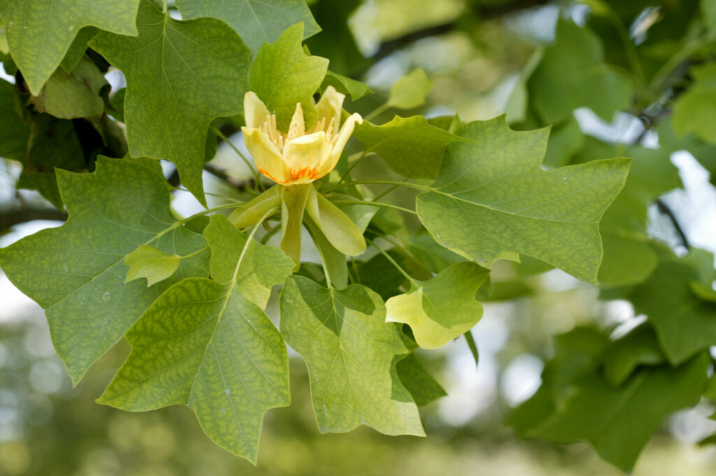 Tuliptree is native shade tree. Tuliptree is named after its tulip-like flowers that are yellow with an orange band at the center that bloom in late spring. It is a fast grower wit leaves that are bright green with four lobes and turn yellow in the fall. It is the state tree of Kentucky, Indiana, and Tennessee.