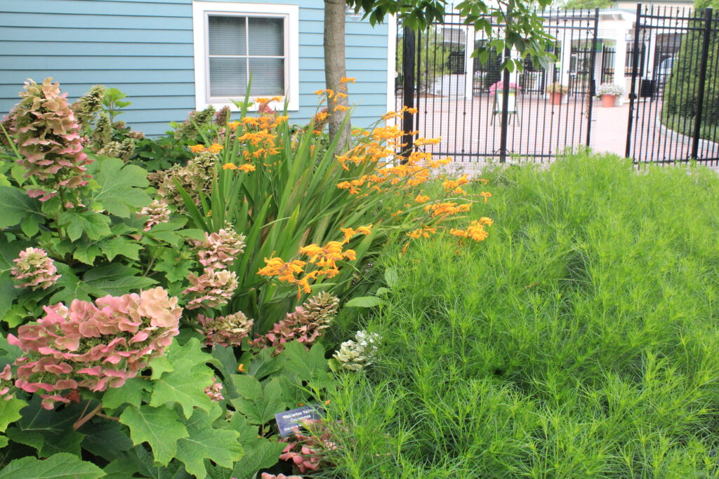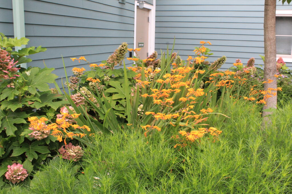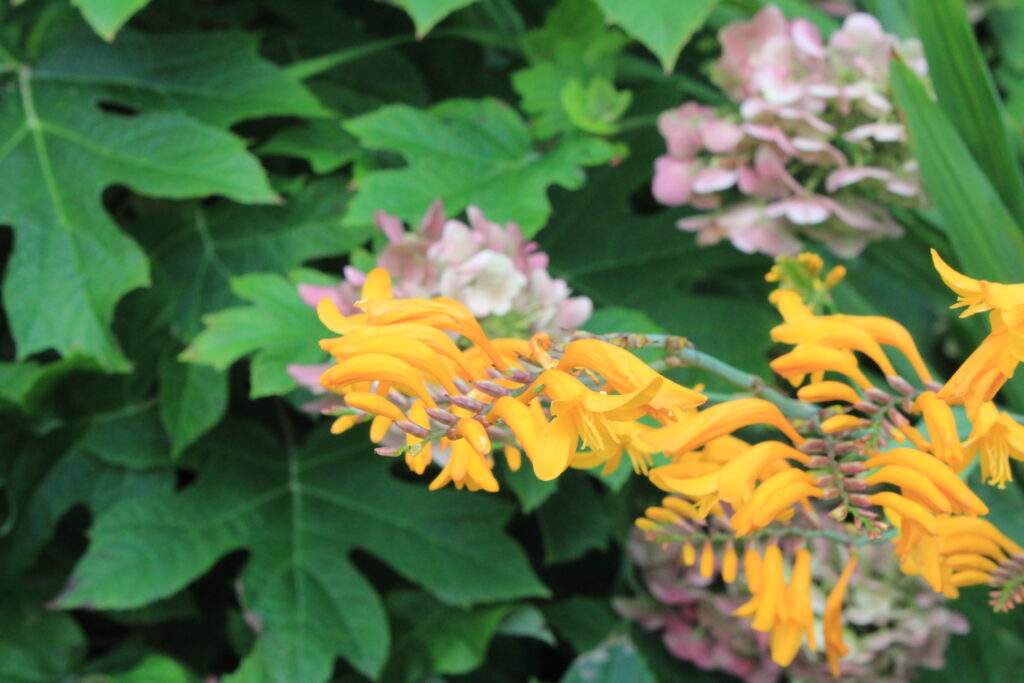 Walberton Yellow Montbretia is a clump-forming perennial with clusters of bright yellow flowers that form on arching flower stalks.
