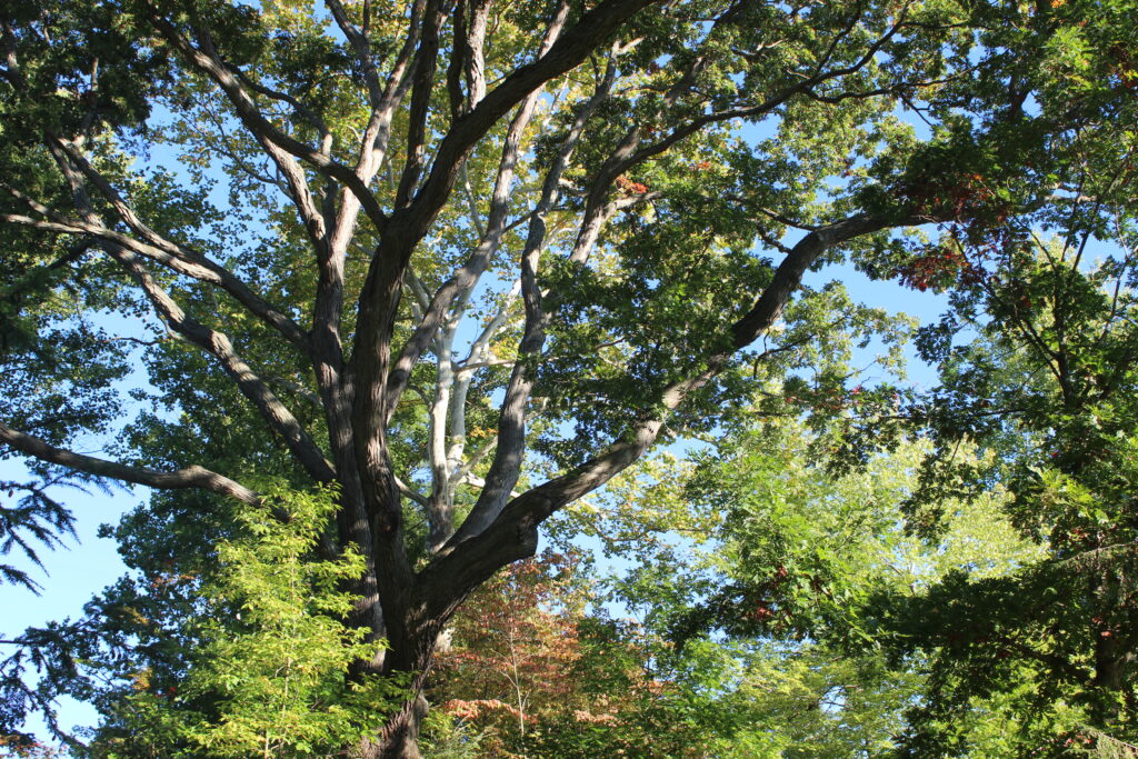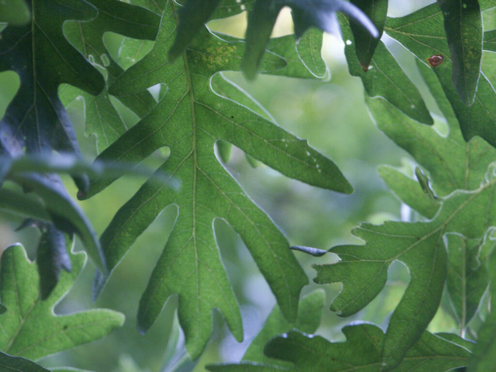 White Oak is a native shade tree. The leaves are dark green and have rounded lobes. The bark is light gray in color. White Oak produces acorns which are enjoyed by wildlife. It is a good native tree for large areas and can live for hundreds of years.