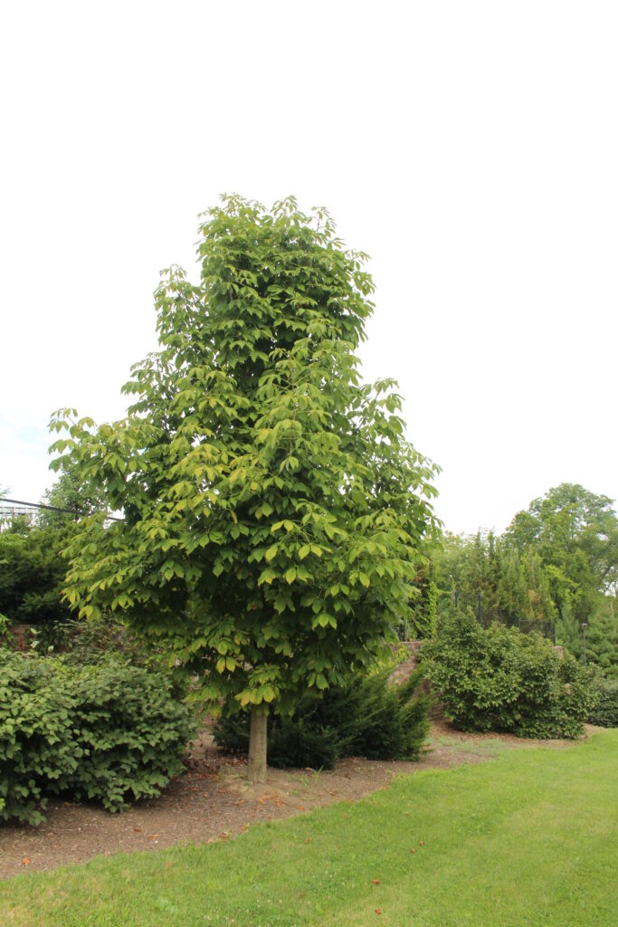 Yellow Buckeye is a native shade tree. It is more resistant to foliar diseases than other buckeye species. The leaves are large and palmately compound. The brown fruit appears in the late spring after the tree blooms. The leaves begin to turn yellow in early fall and then fade to orange.